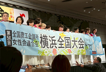 続いて、次期開催地である横浜女性会から次回全国大会のPRがあり、全国商工会議所女性会連合会旗引渡しがなされ、閉会となりました。